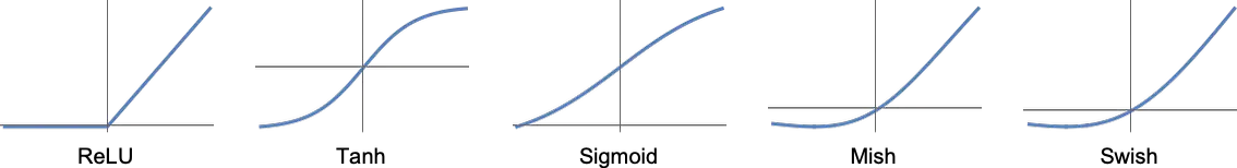 Enfin, à “l’intérieur” du neurone, on applique une fonction de “seuil” (ou “d’activation”) qui, comme vous pouvez le voir dans les exemples ci-dessous, va transformer une valeur obtenue en entrée en une valeur de sortie. C’est cette fonction qui va donner la valeur finale du neurone.