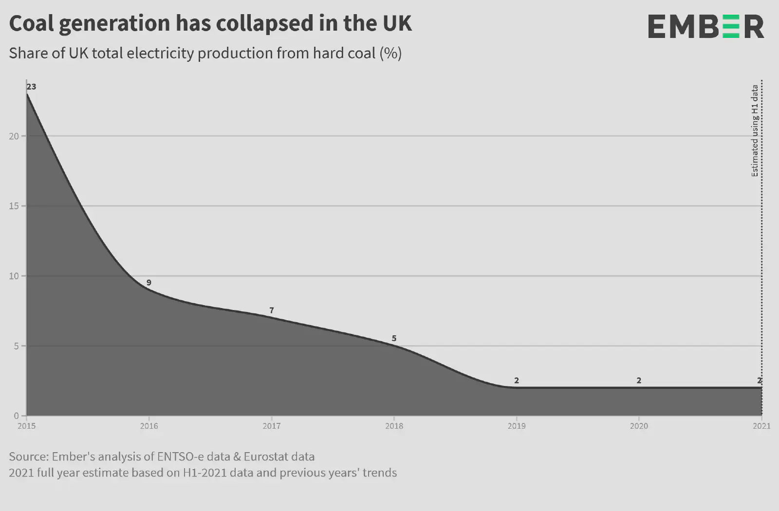 Et pourtant, on peut se passer du charbon, l’utilisation du charbon pour l’électricité au Royaume-Uni s’est effondrée de 93 % depuis 2015 et ne représente plus que 2 % de la production d’électricité…